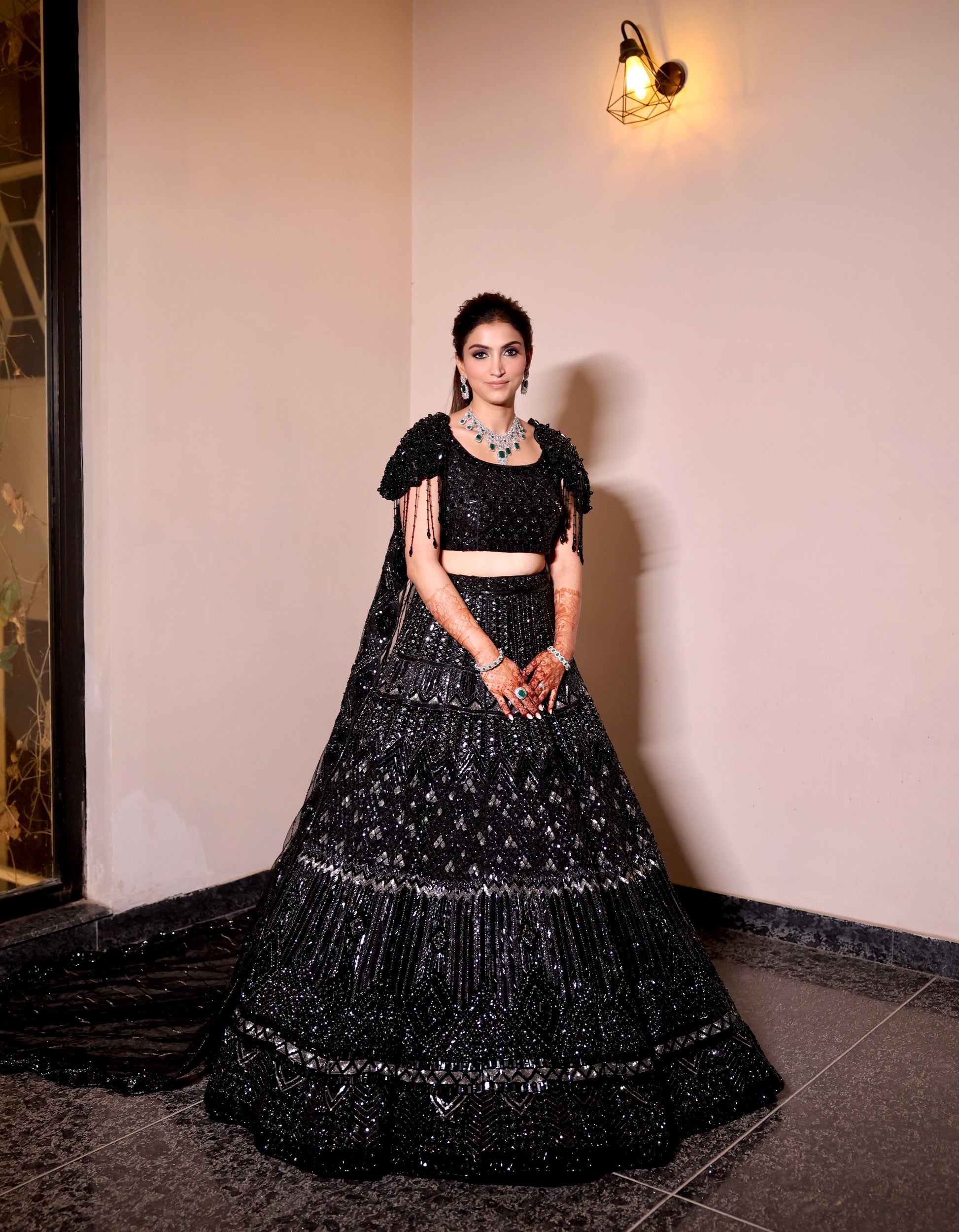 Wrapped in black, touched by brilliance. Elevate your special moments with ensembles that are handcrafted with love & intricately embroidered with crystals , stones, sequins and kutdana .